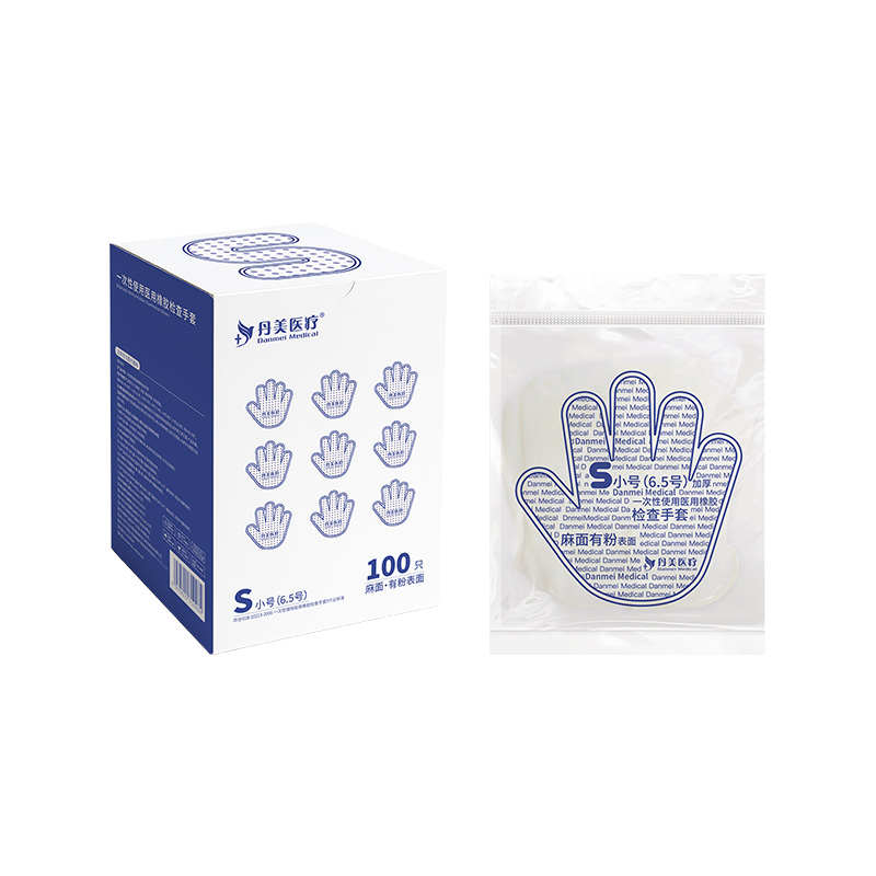 丹美 一次性使用医用橡胶检查手套(有粉 麻面)100*1商品编号:1100005001