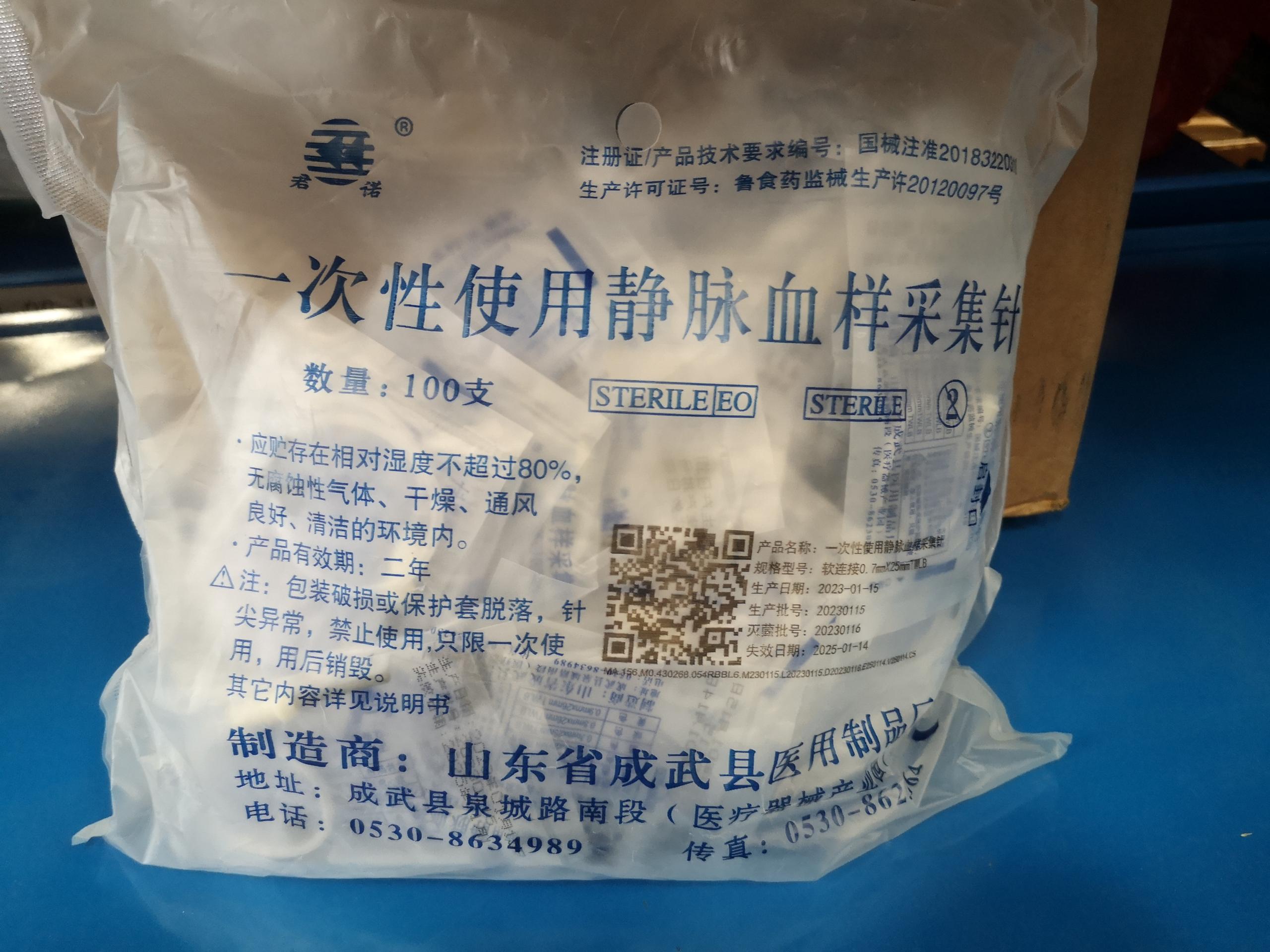 山东成武 成武 一次性使用静脉采血针100*1(14袋)商品编号:19160001002
